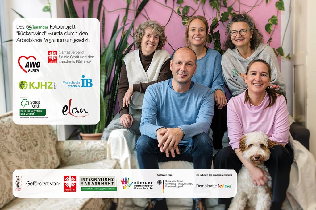 Das Fotoprojekt „Rückenwind“ vermittelt durch eindrucksvolle Portraits von Menschen mit Migrations- oder Fluchtbiografie und persönlichen Liebeserklärungen zu einem Bezugsort in Fürth ein authentisches und positives Bild vom interkulturellen Zusammenleben unserer Stadt und hilft gemeinsame Ankerpunkte zu finden.